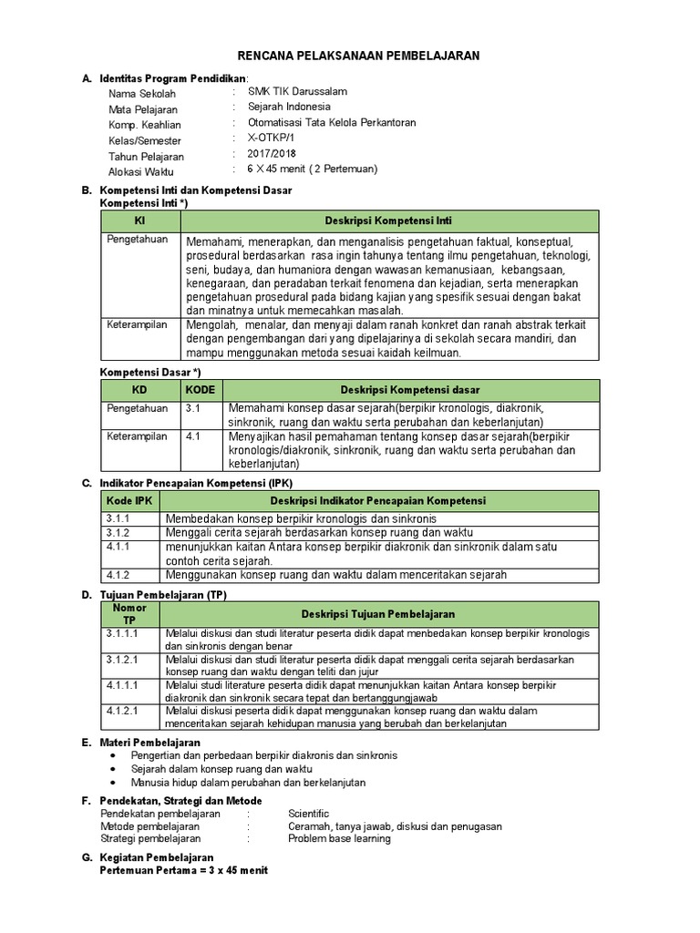 Silahkan download sesuai dengan kebutuhan dan fungsinya. Sejarah indonesia (wajib) kelas : Sma negeri 9 malang kelas/ semester : Contoh rpp sejarah indonesia 1 lembar kelas x tahun ajaran 2020/2021 akan kami bagikan untuk ibu dan bapak guru yang membutuhkan rpp 1 lembar format rpp 1 lembar pdf dan format rpp 1 lembar doc. Man 2 model medan mata pelajaran :